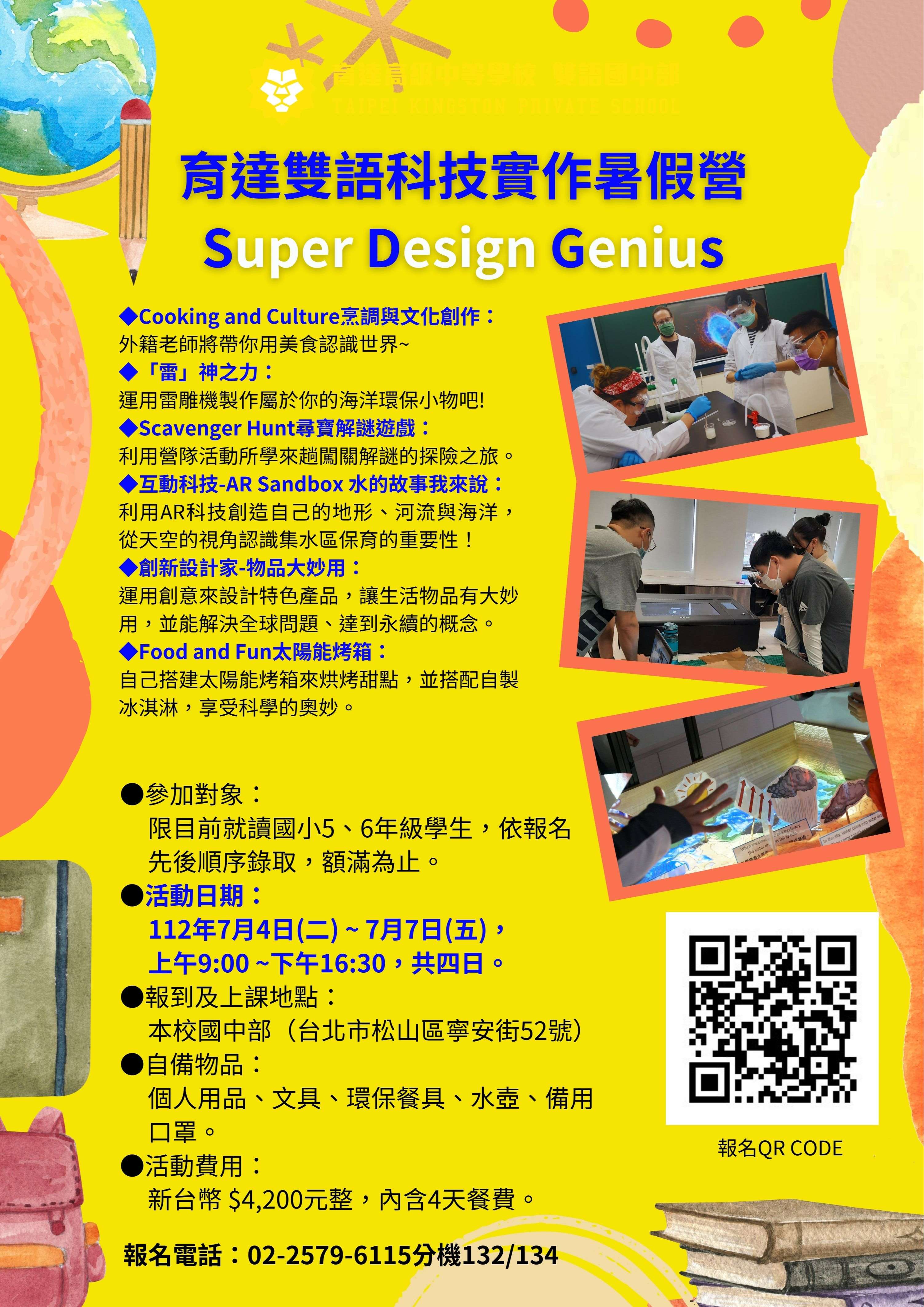 一、活動目的:本校中外師教師團隊共同設計雙語實作課程,以探究式學習與實作提升學生學習動機,啟發學生對於科技、永續、設計的好奇心。