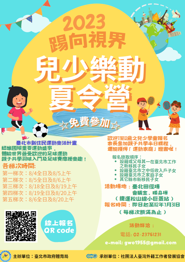 (一)營隊名稱:2023踢向世界兒少樂動夏令營。