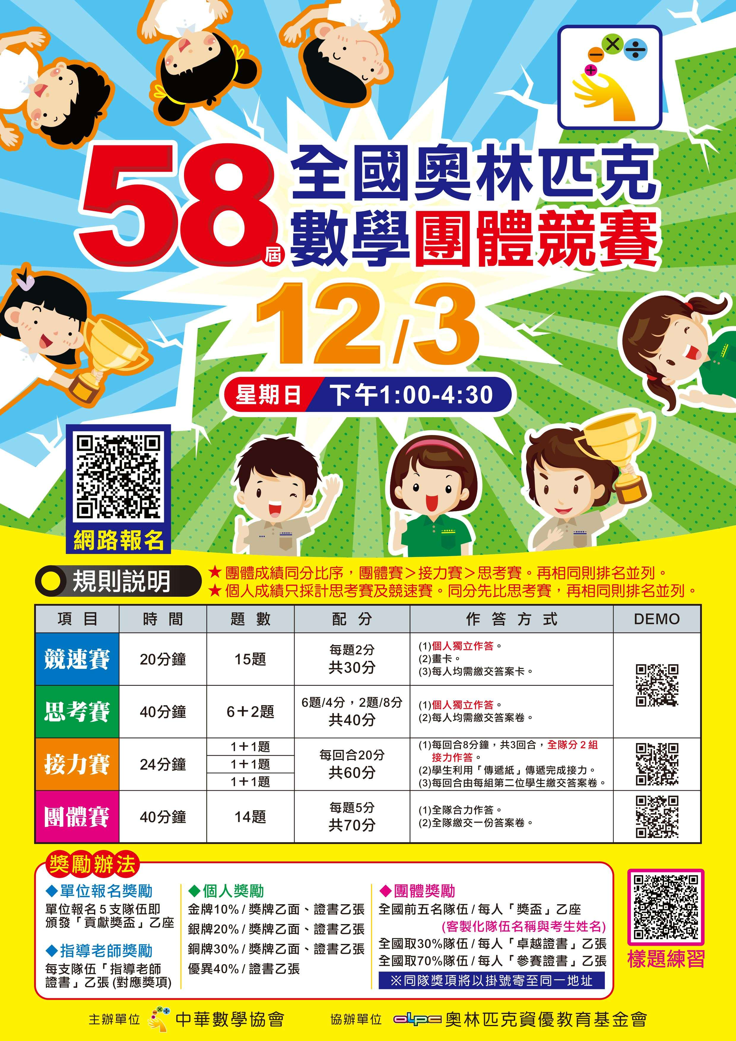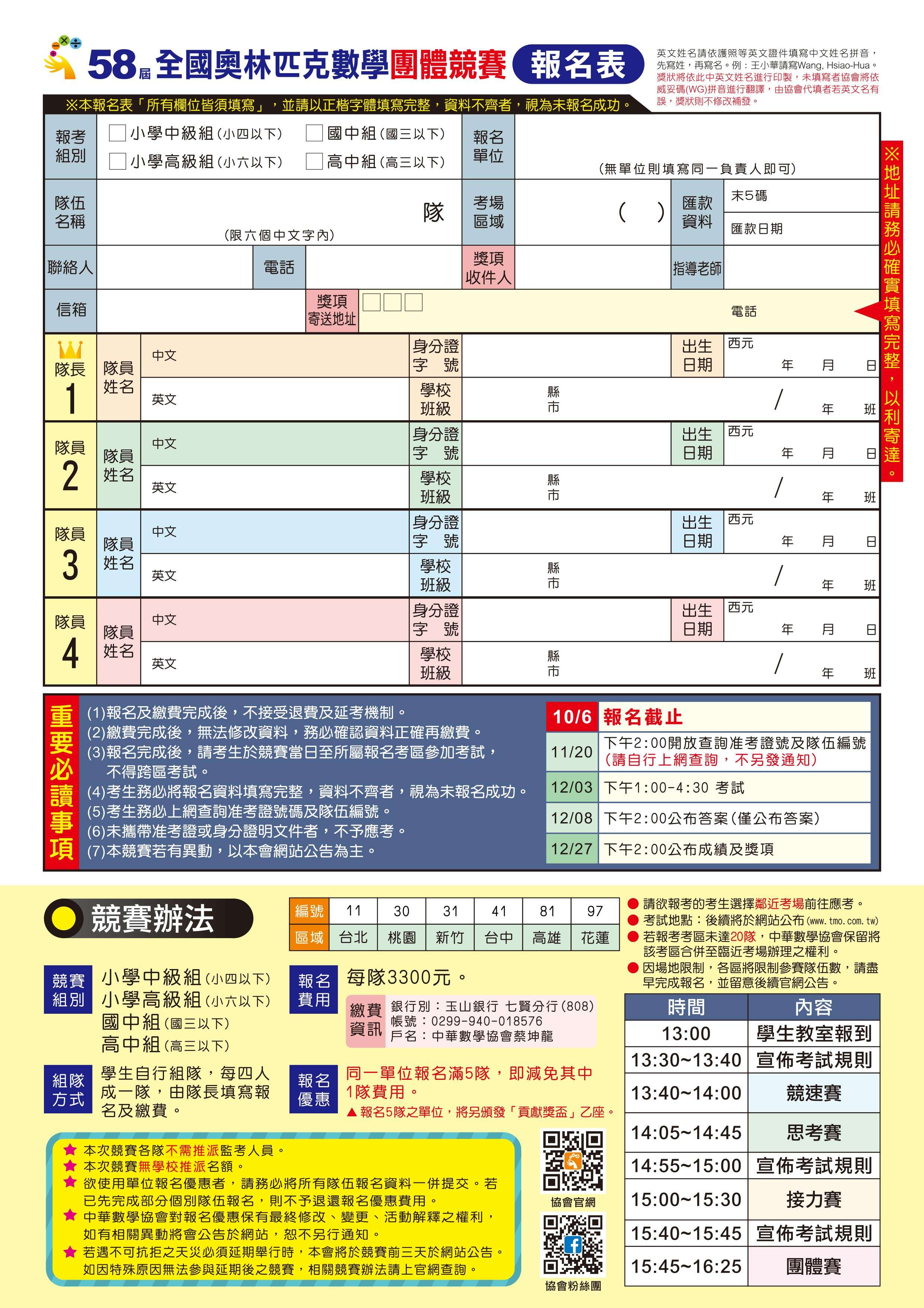 二、競賽地區:(考試地點後續於中華數學協會官網公布)