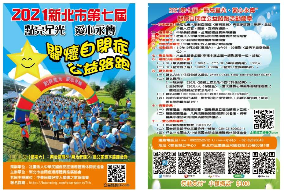 三、然為讓星兒家庭們能走到戶外與一般民眾享有同樣的體育 休閒生活,遂策畫辦理此項關懷自閉症公益路跑活動,相 關內容如下: