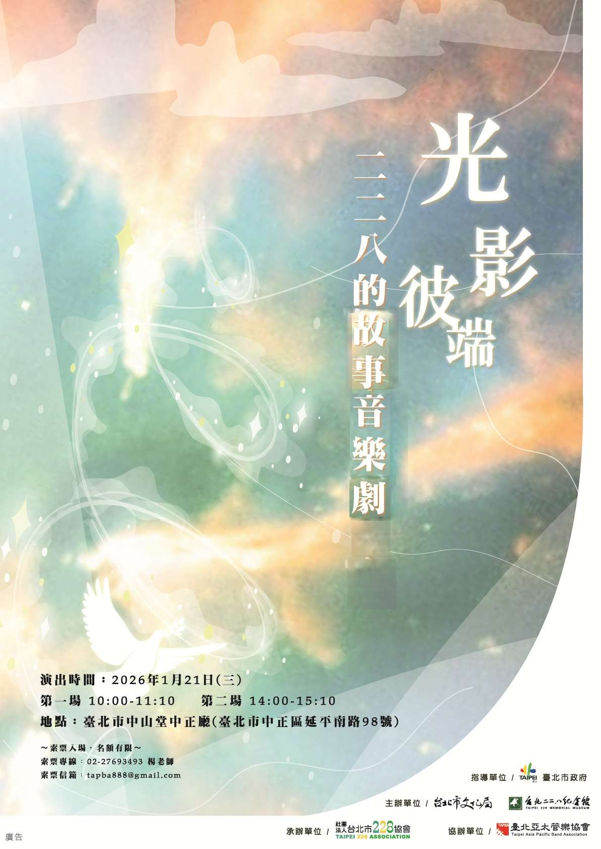 (三)演出地點:臺北市中山堂中正廳(臺北市中正區延平南路98號,參加者需請自行前往)。