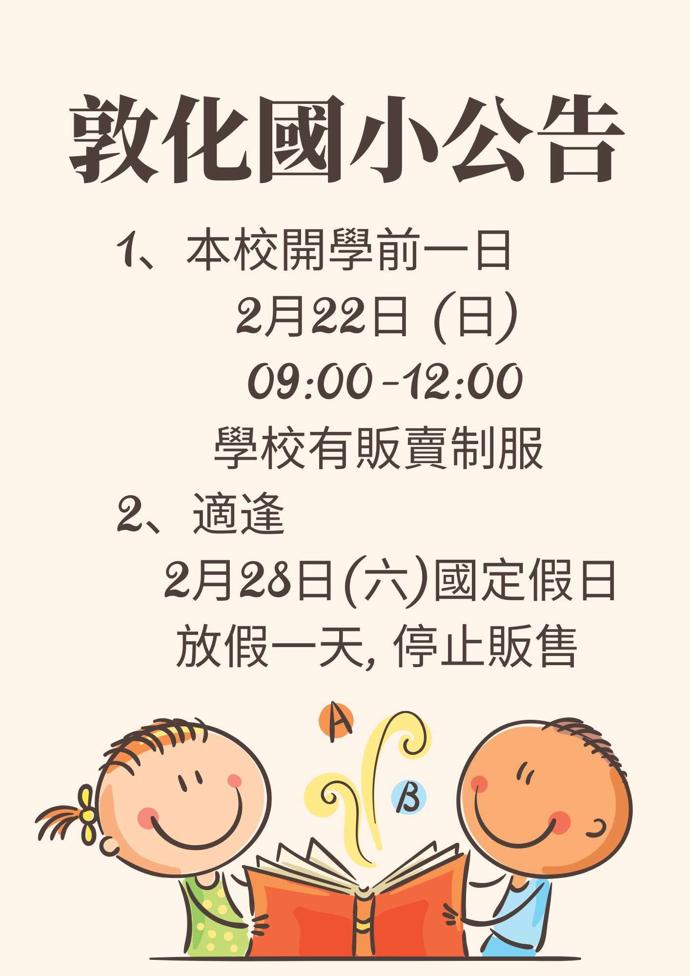 2、適逢 2月28日(六)國定假日放假一天, 停止販售